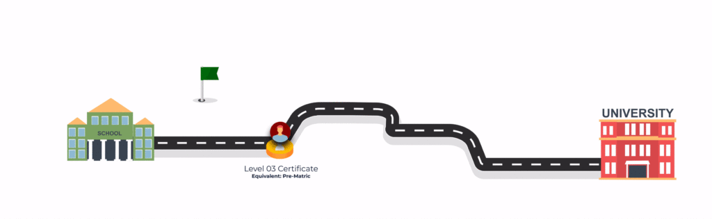 Ideal entry point for candidates looking for a Fast Track pathway to complete intermediate and jump to University Degree. The level includes basic and advance courses with specialized focus on the Business Management and Entrepreneurship streams. This is a steppingstone towards completion of HSC / Intermediate equivalent qualification.
